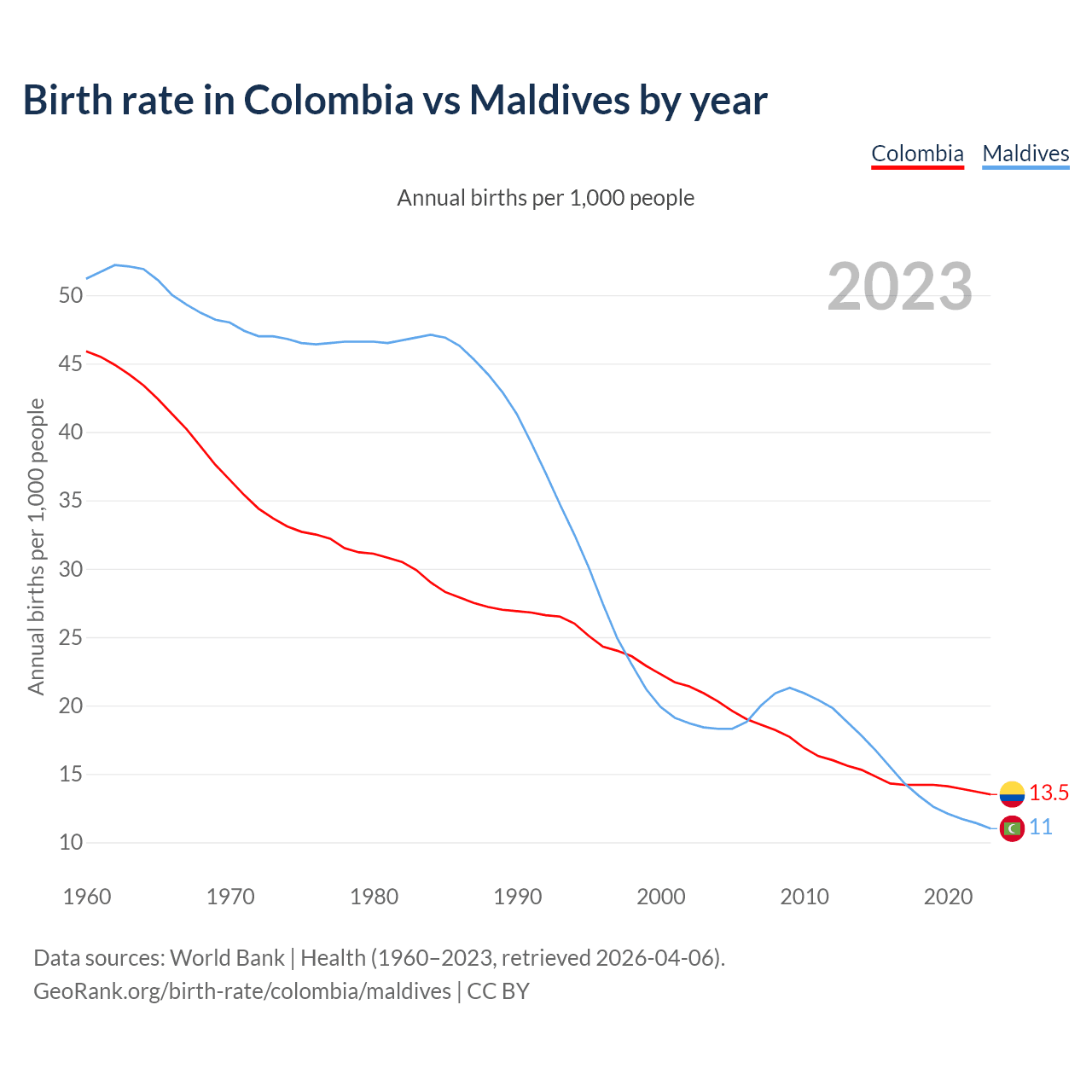 GeoRank.org/birth-rate/colombia/maldives | CC BY