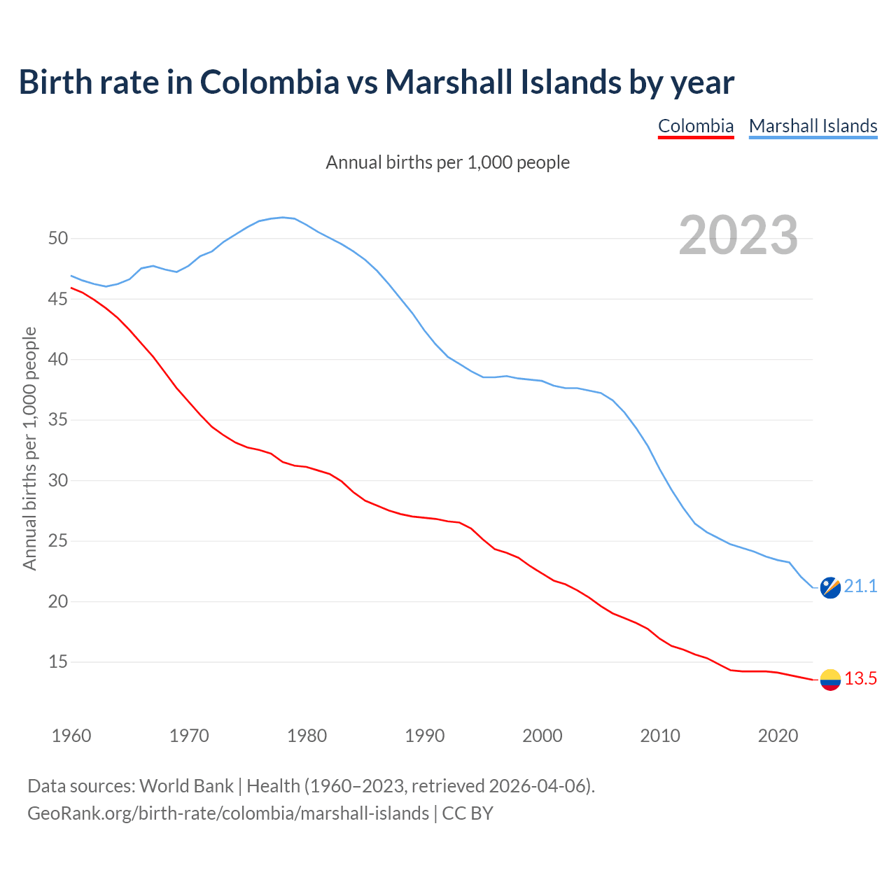 GeoRank.org/birth-rate/colombia/marshall-islands | CC BY