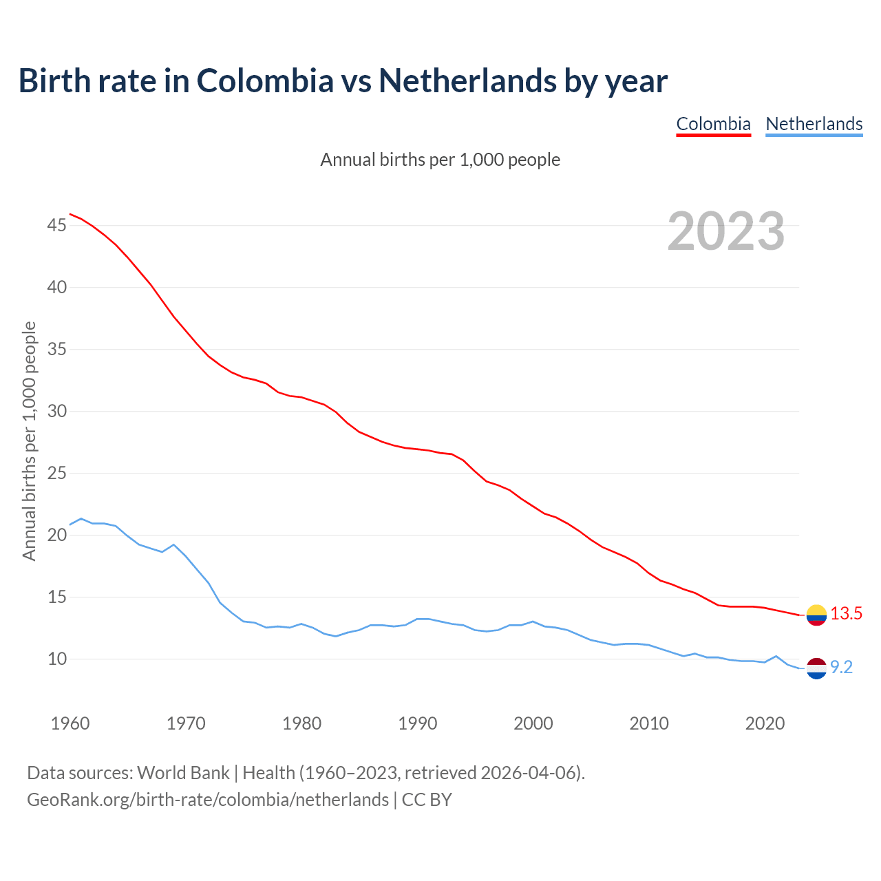 GeoRank.org/birth-rate/colombia/netherlands | CC BY