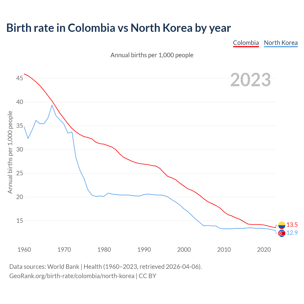 GeoRank.org/birth-rate/colombia/north-korea | CC BY