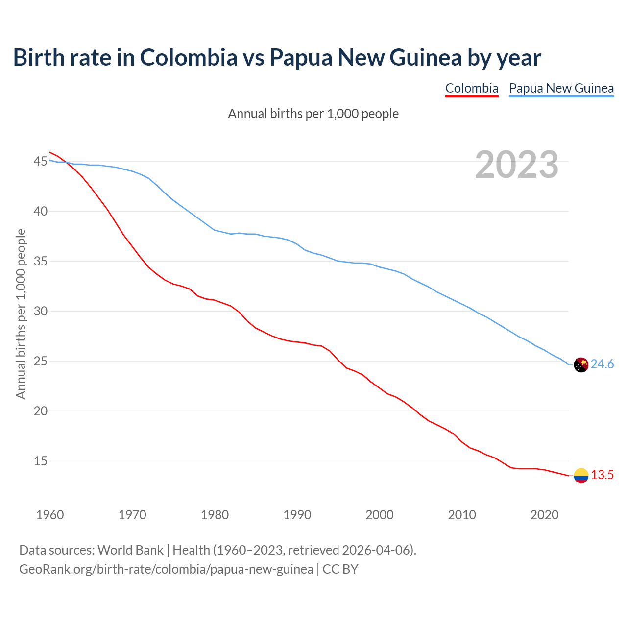 GeoRank.org/birth-rate/colombia/papua-new-guinea | CC BY