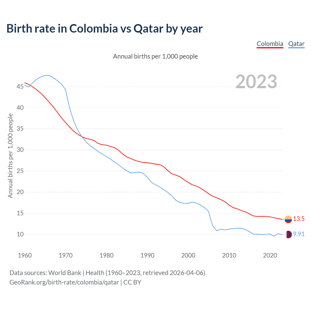 GeoRank.org/birth-rate/colombia/qatar | CC BY