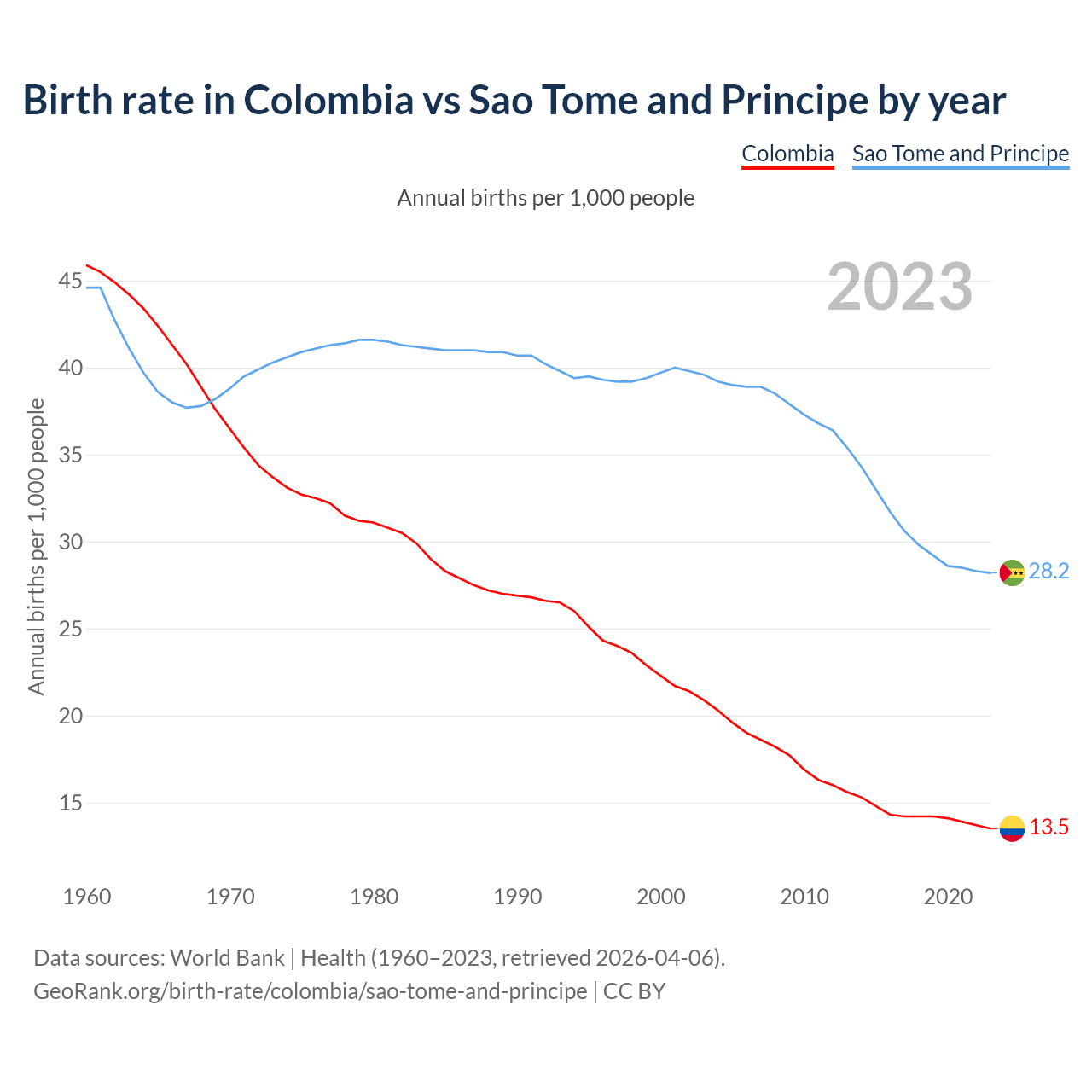 GeoRank.org/birth-rate/colombia/sao-tome-and-principe | CC BY