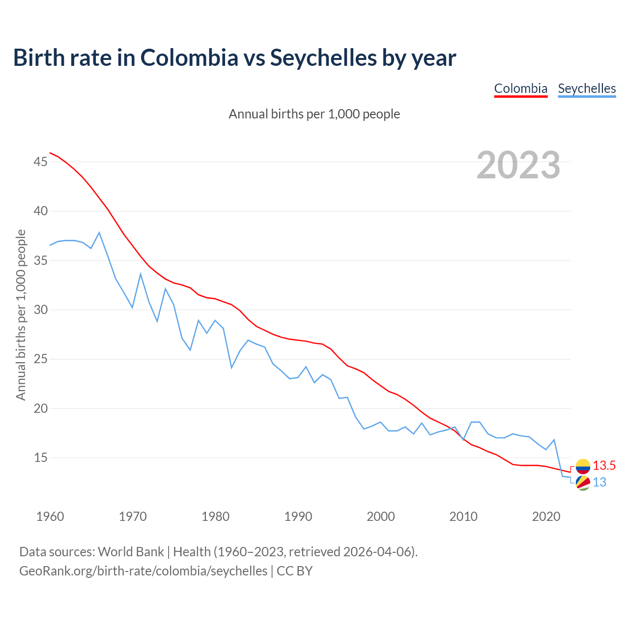 GeoRank.org/birth-rate/colombia/seychelles | CC BY