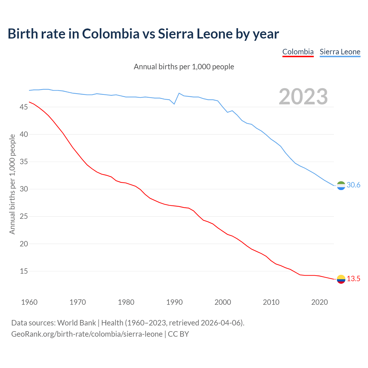 GeoRank.org/birth-rate/colombia/sierra-leone | CC BY