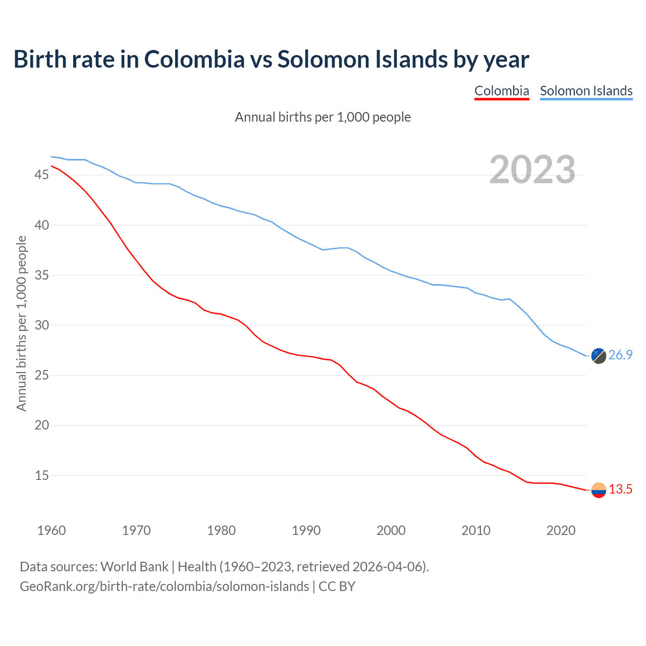 GeoRank.org/birth-rate/colombia/solomon-islands | CC BY