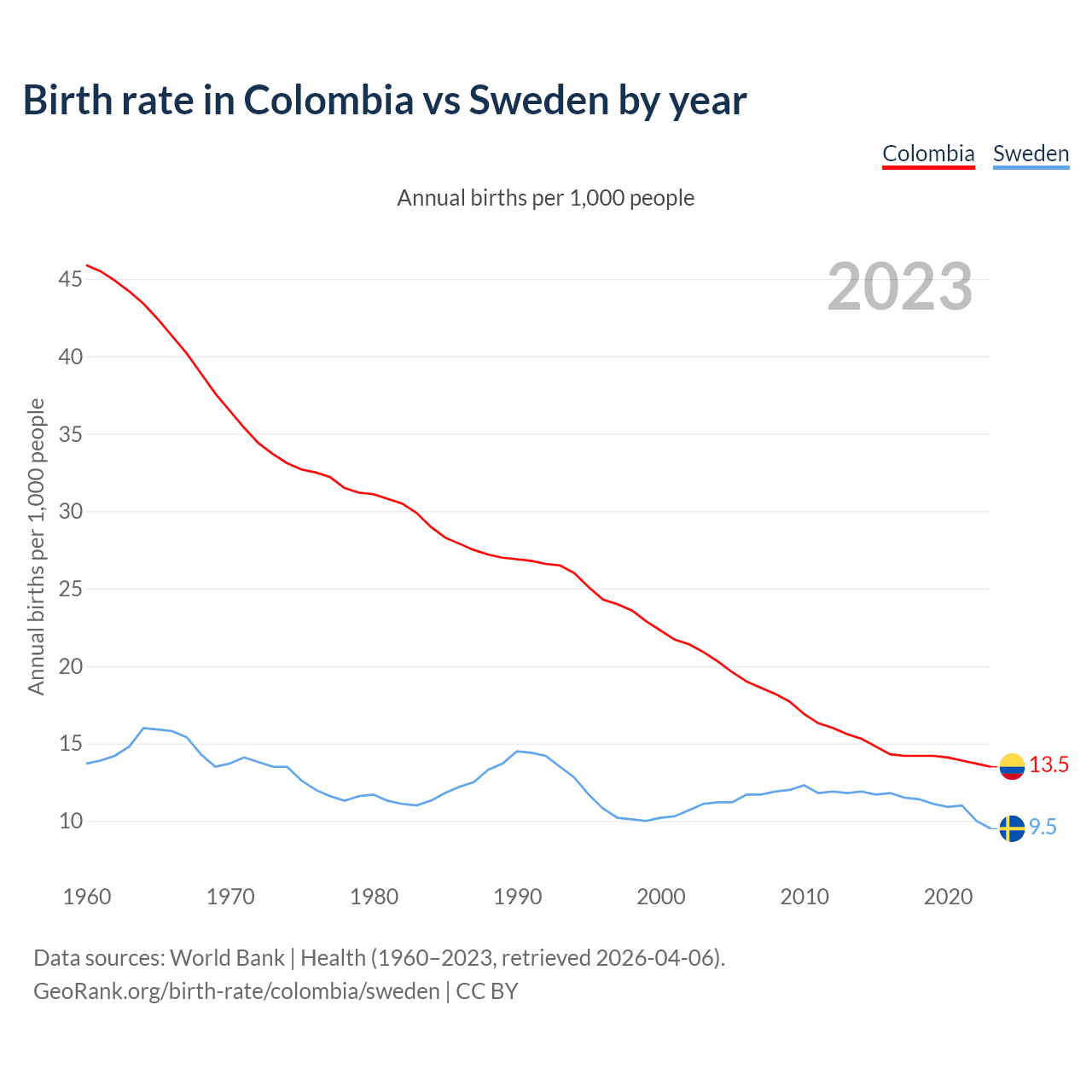 GeoRank.org/birth-rate/colombia/sweden | CC BY