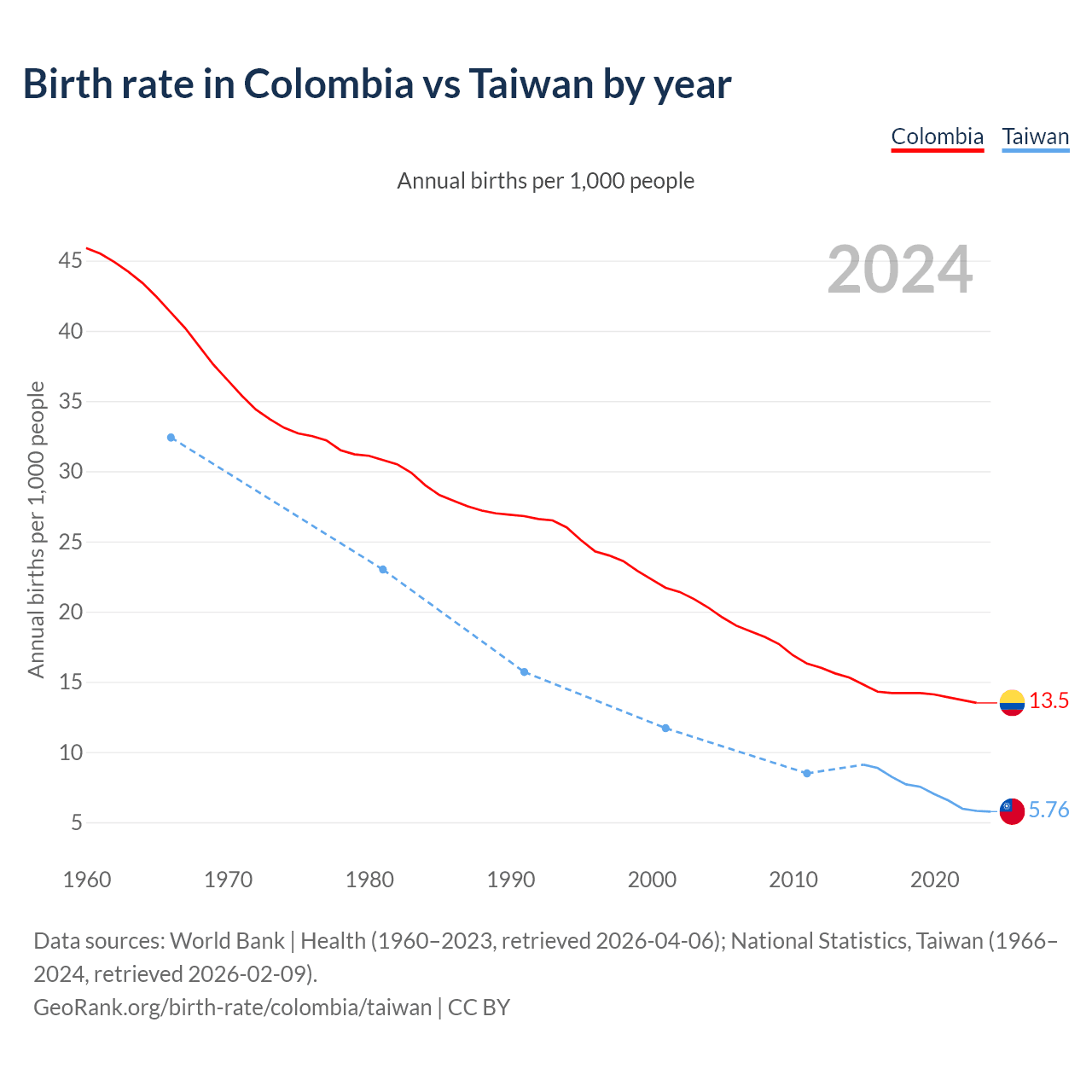 GeoRank.org/birth-rate/colombia/taiwan | CC BY