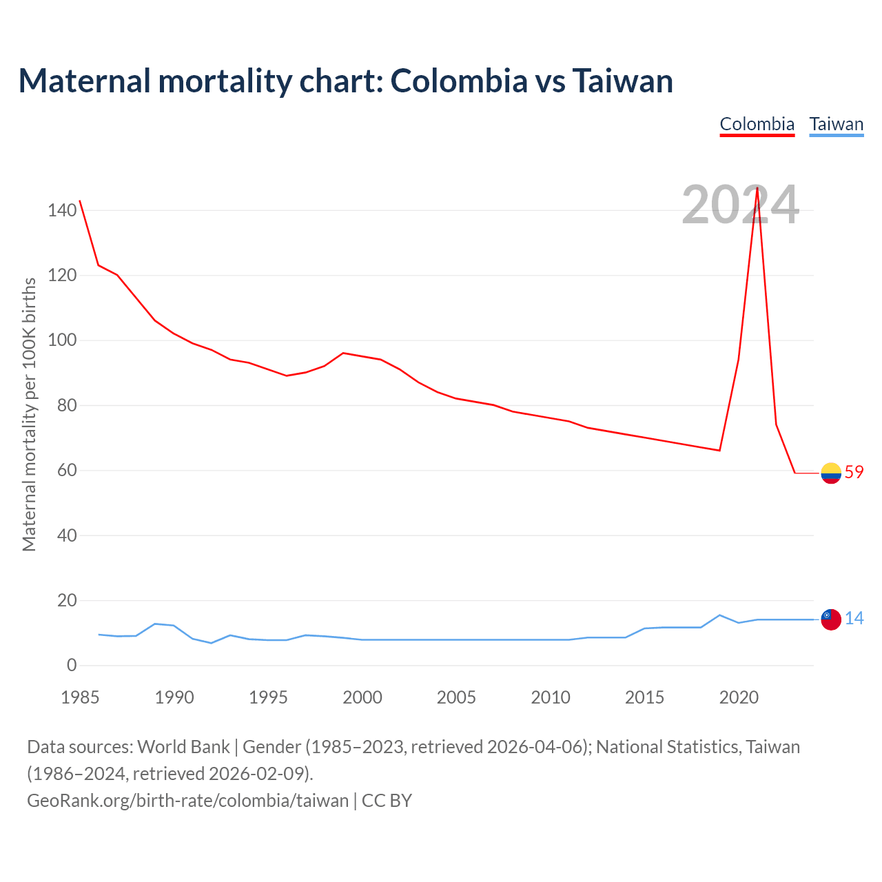Maternal mortality chart: Colombia vs Taiwan
