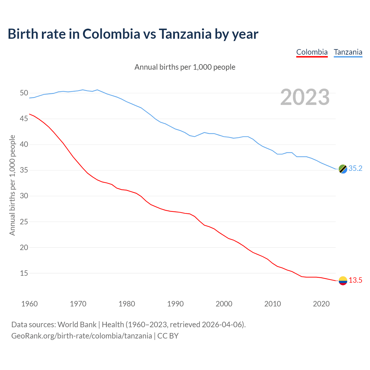 GeoRank.org/birth-rate/colombia/tanzania | CC BY
