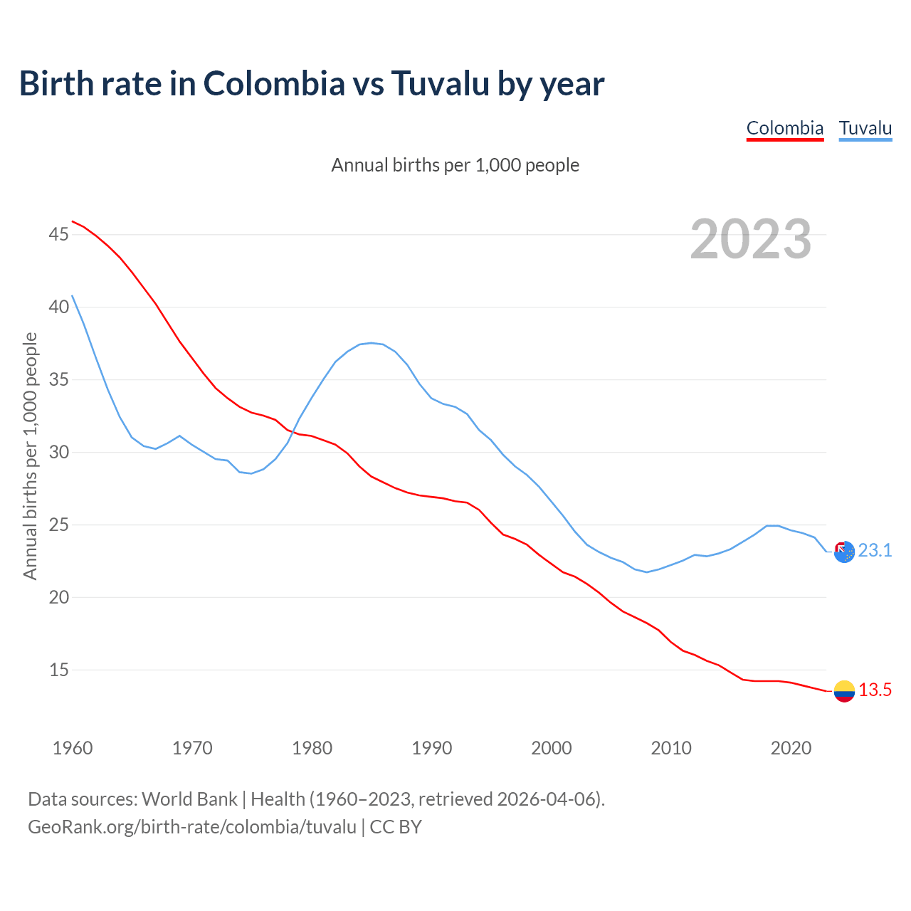 GeoRank.org/birth-rate/colombia/tuvalu | CC BY