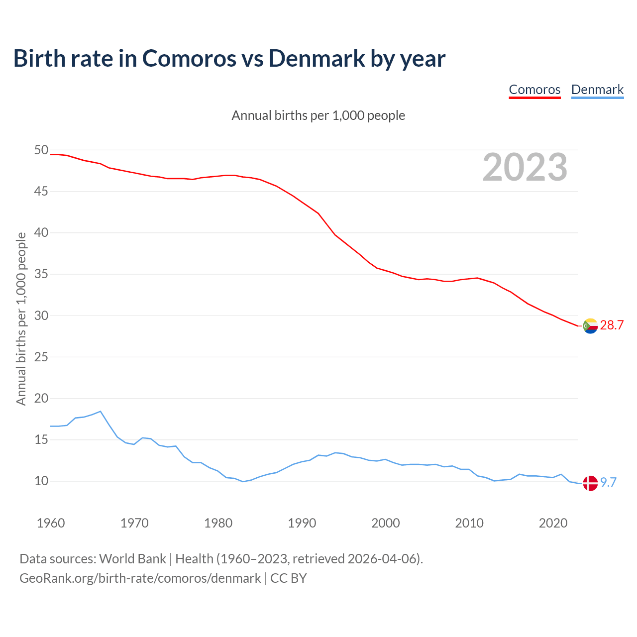 GeoRank.org/birth-rate/comoros/denmark | CC BY