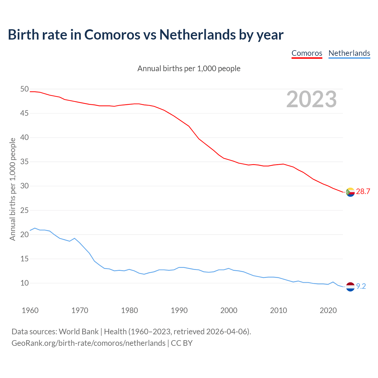 GeoRank.org/birth-rate/comoros/netherlands | CC BY