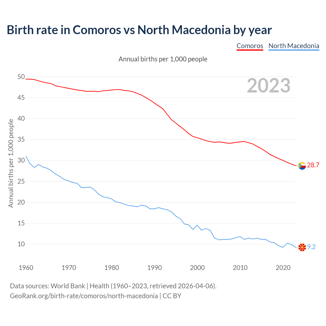GeoRank.org/birth-rate/comoros/north-macedonia | CC BY