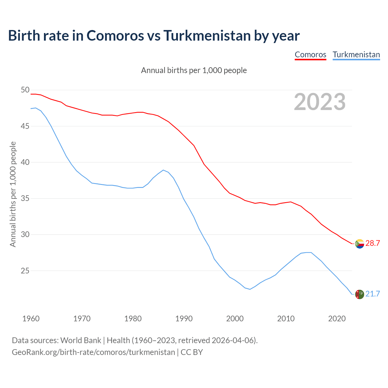 GeoRank.org/birth-rate/comoros/turkmenistan | CC BY