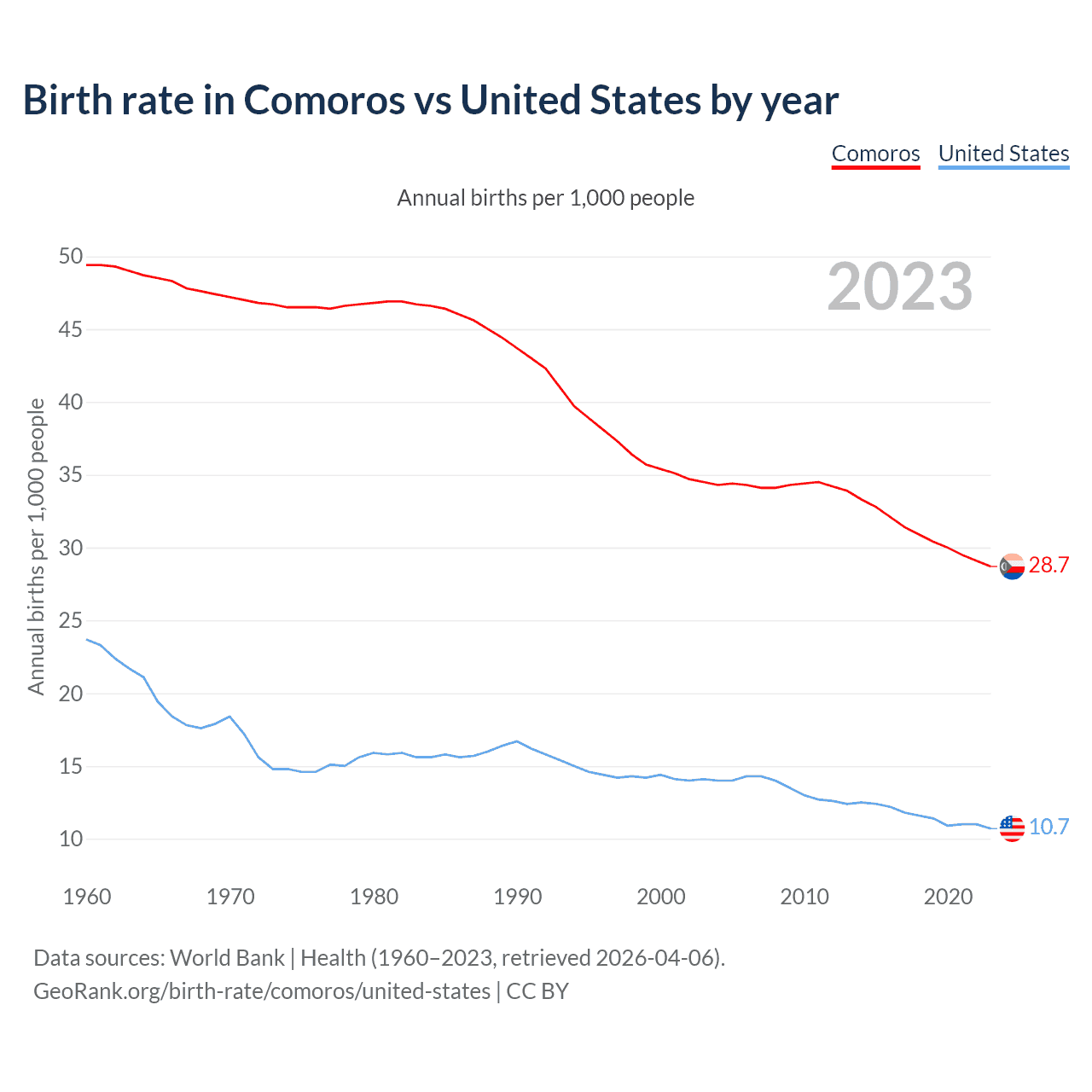 GeoRank.org/birth-rate/comoros/united-states | CC BY