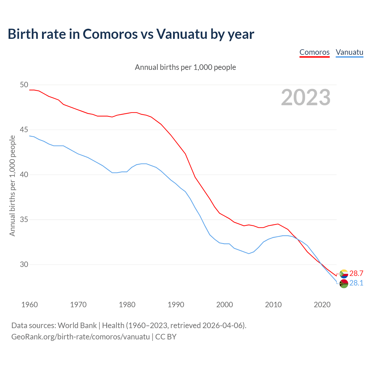 GeoRank.org/birth-rate/comoros/vanuatu | CC BY