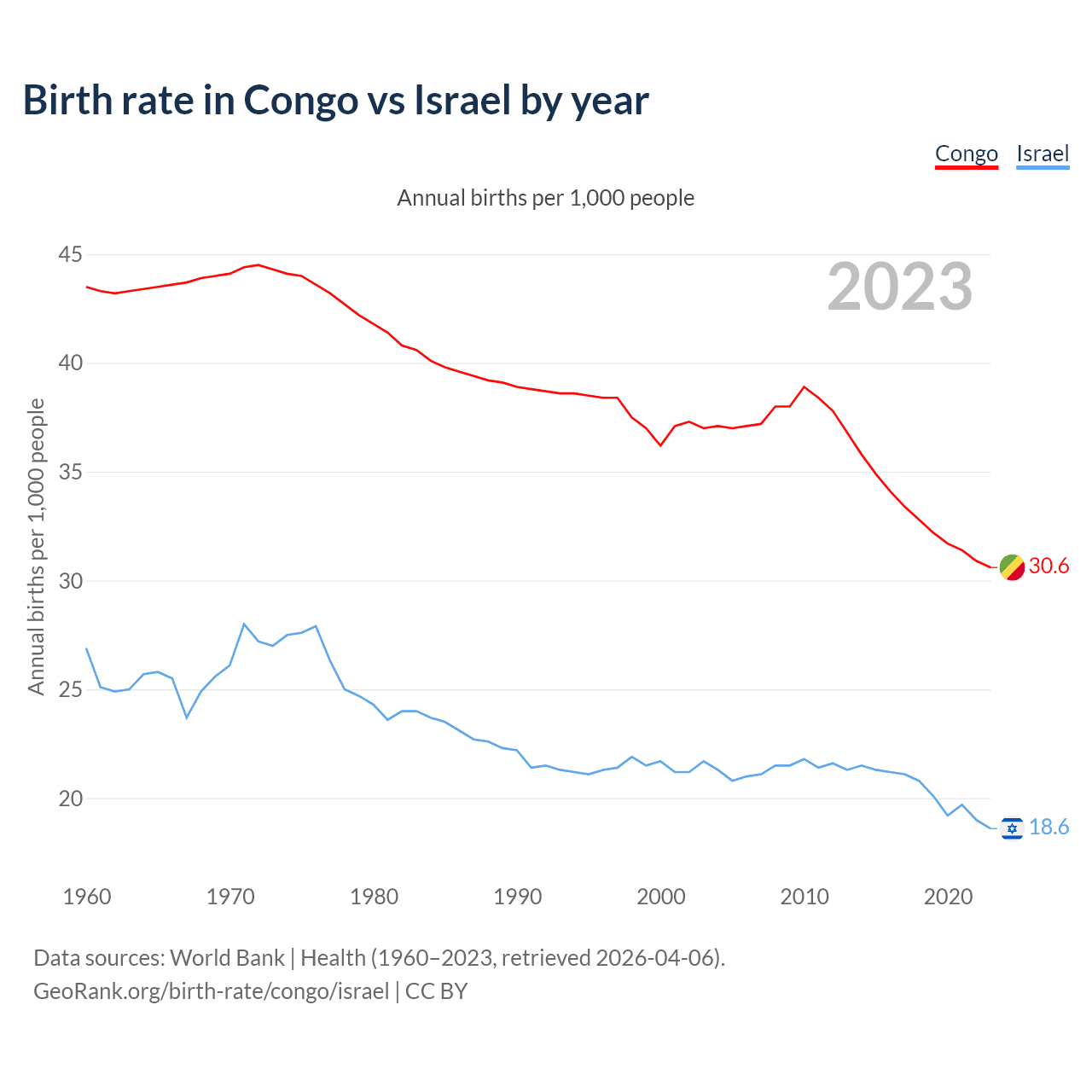 GeoRank.org/birth-rate/congo/israel | CC BY