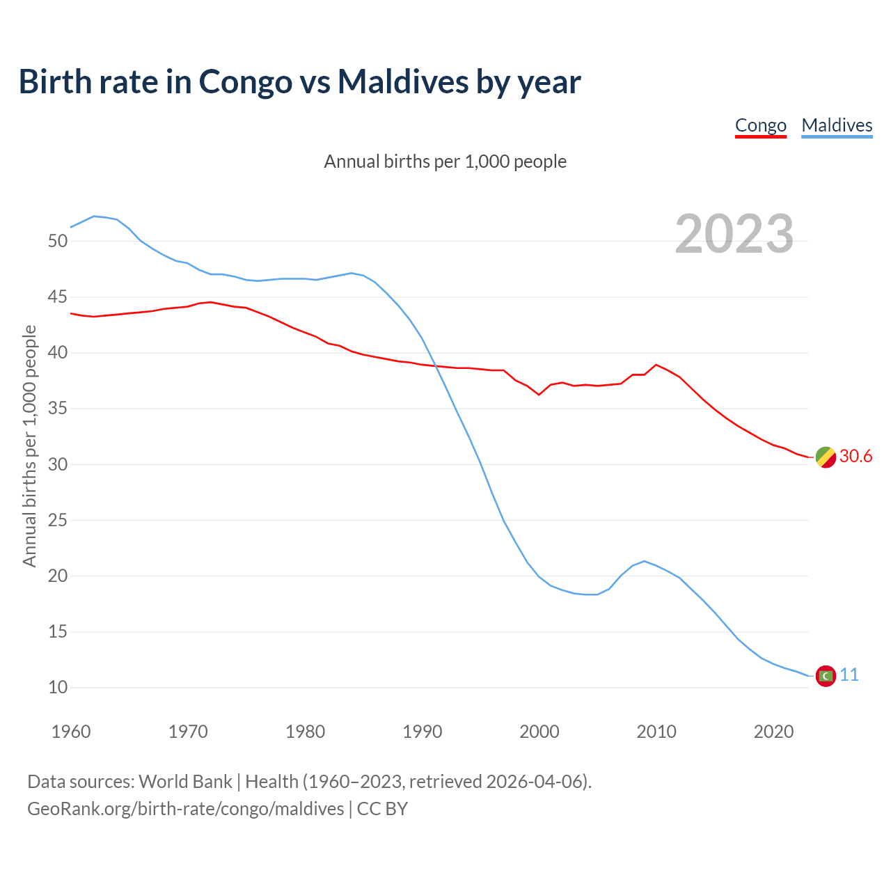 GeoRank.org/birth-rate/congo/maldives | CC BY