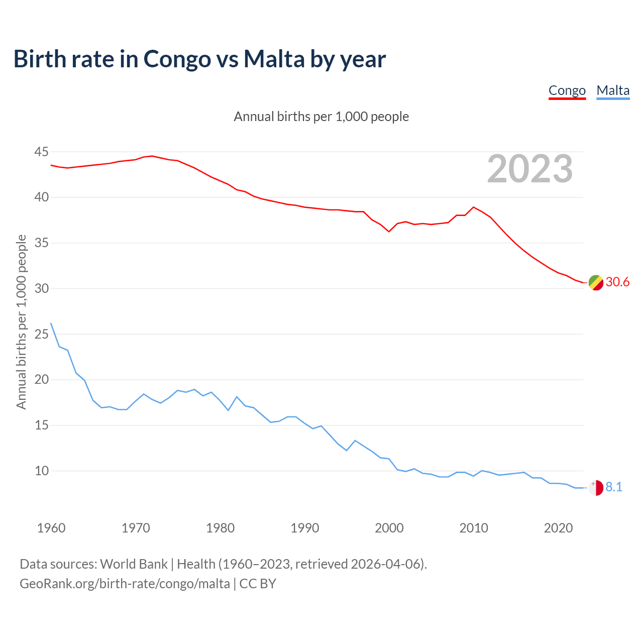 GeoRank.org/birth-rate/congo/malta | CC BY