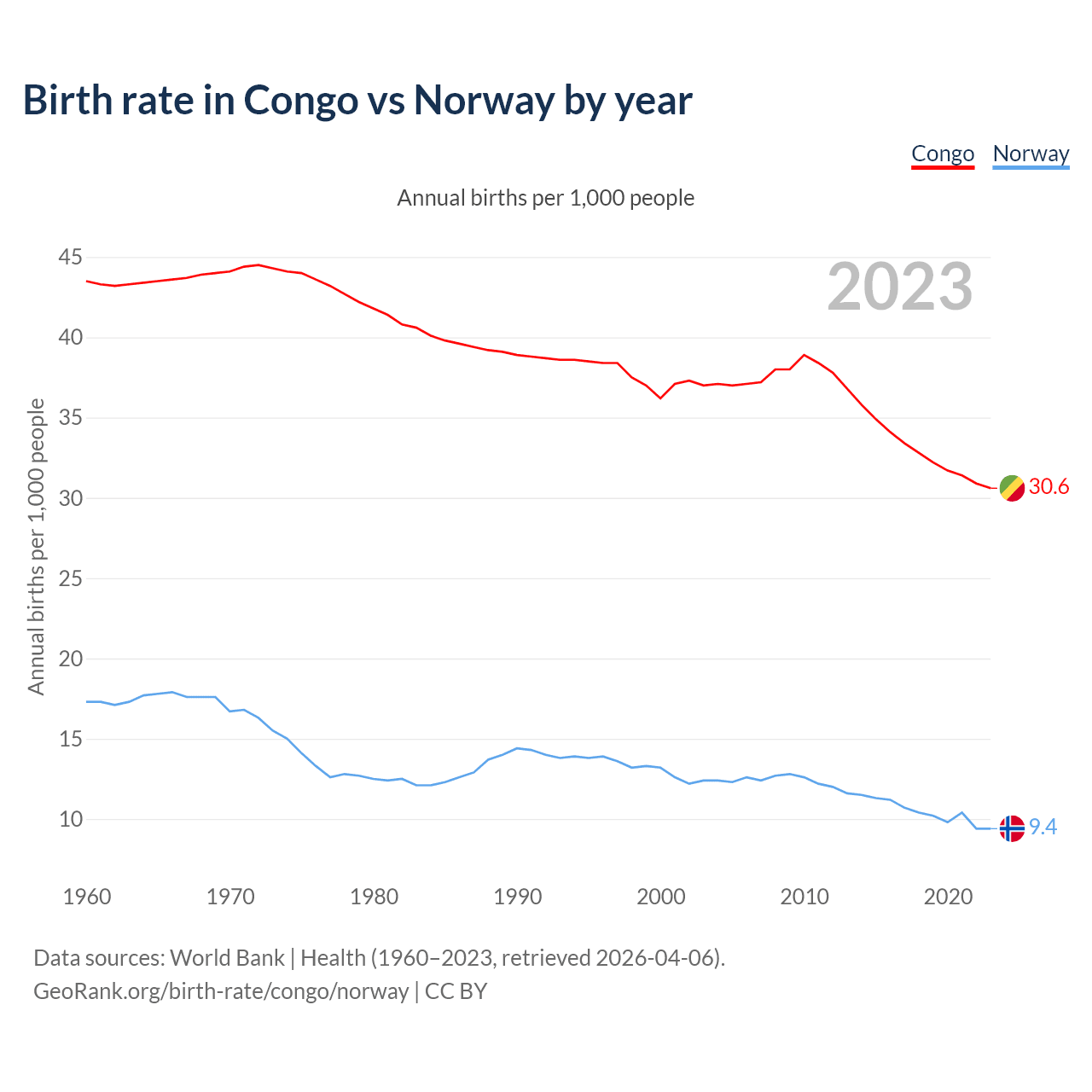 GeoRank.org/birth-rate/congo/norway | CC BY
