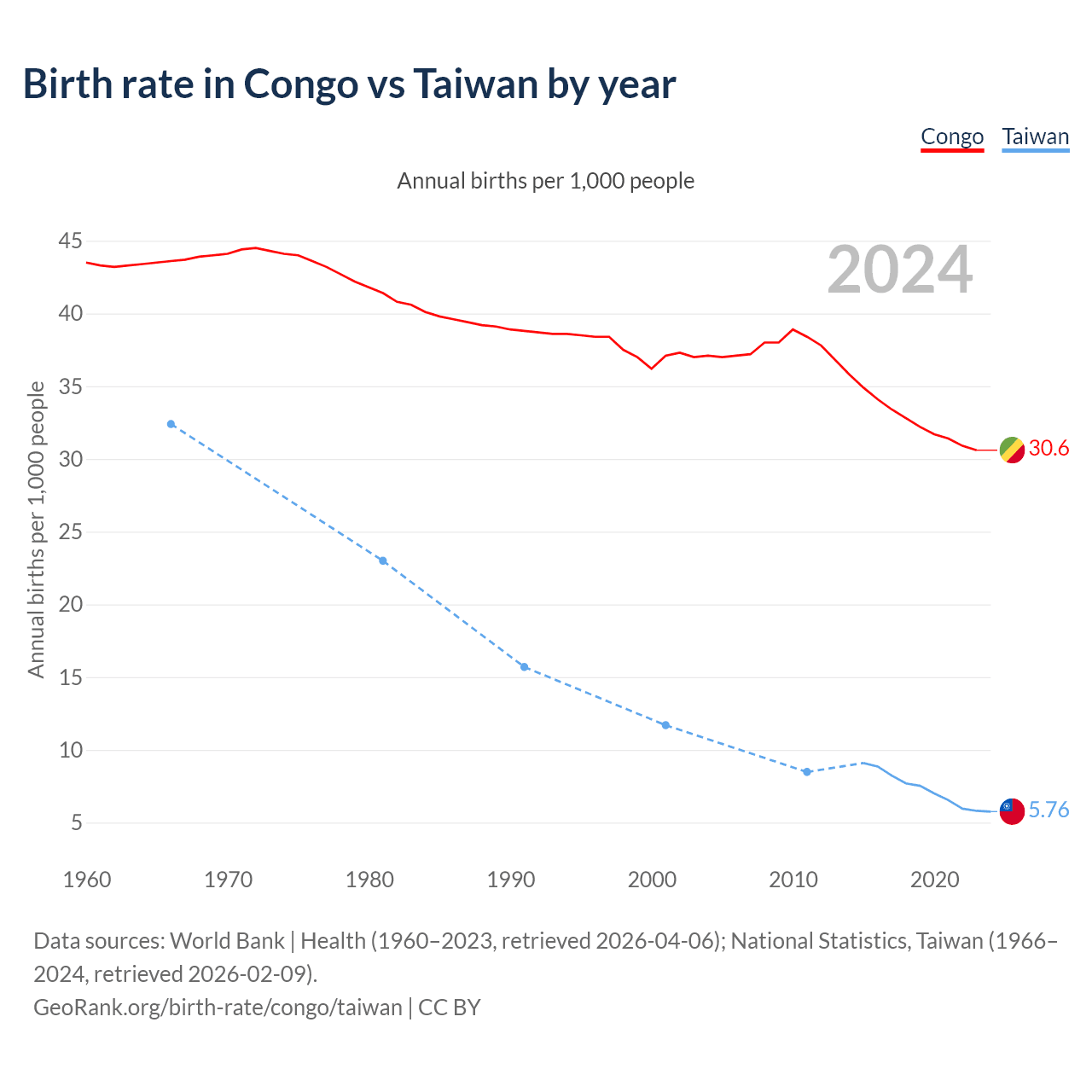 GeoRank.org/birth-rate/congo/taiwan | CC BY