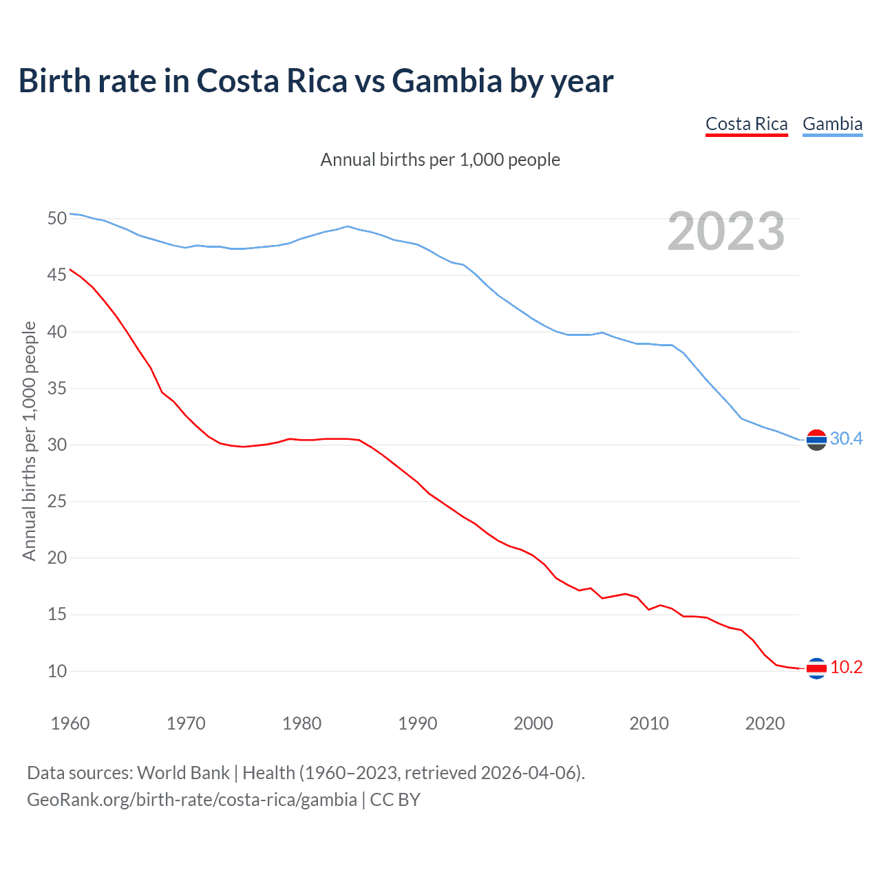GeoRank.org/birth-rate/costa-rica/gambia | CC BY