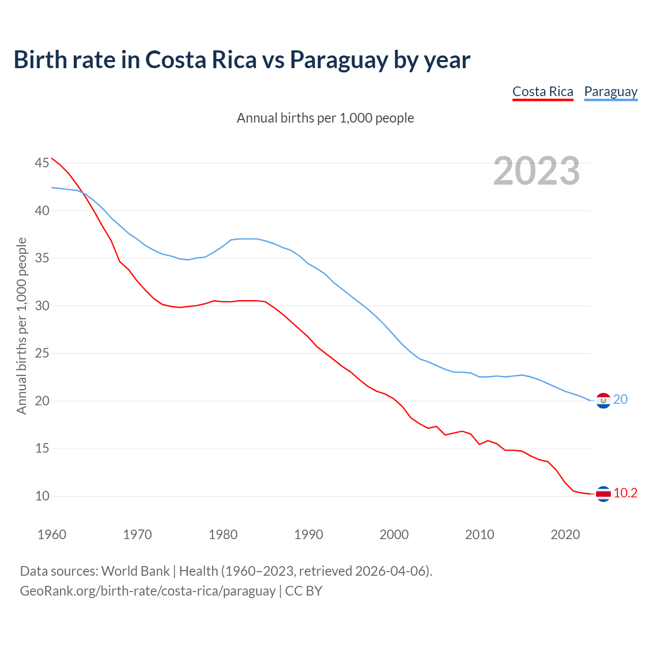 GeoRank.org/birth-rate/costa-rica/paraguay | CC BY
