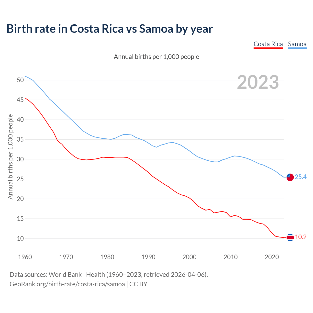 GeoRank.org/birth-rate/costa-rica/samoa | CC BY