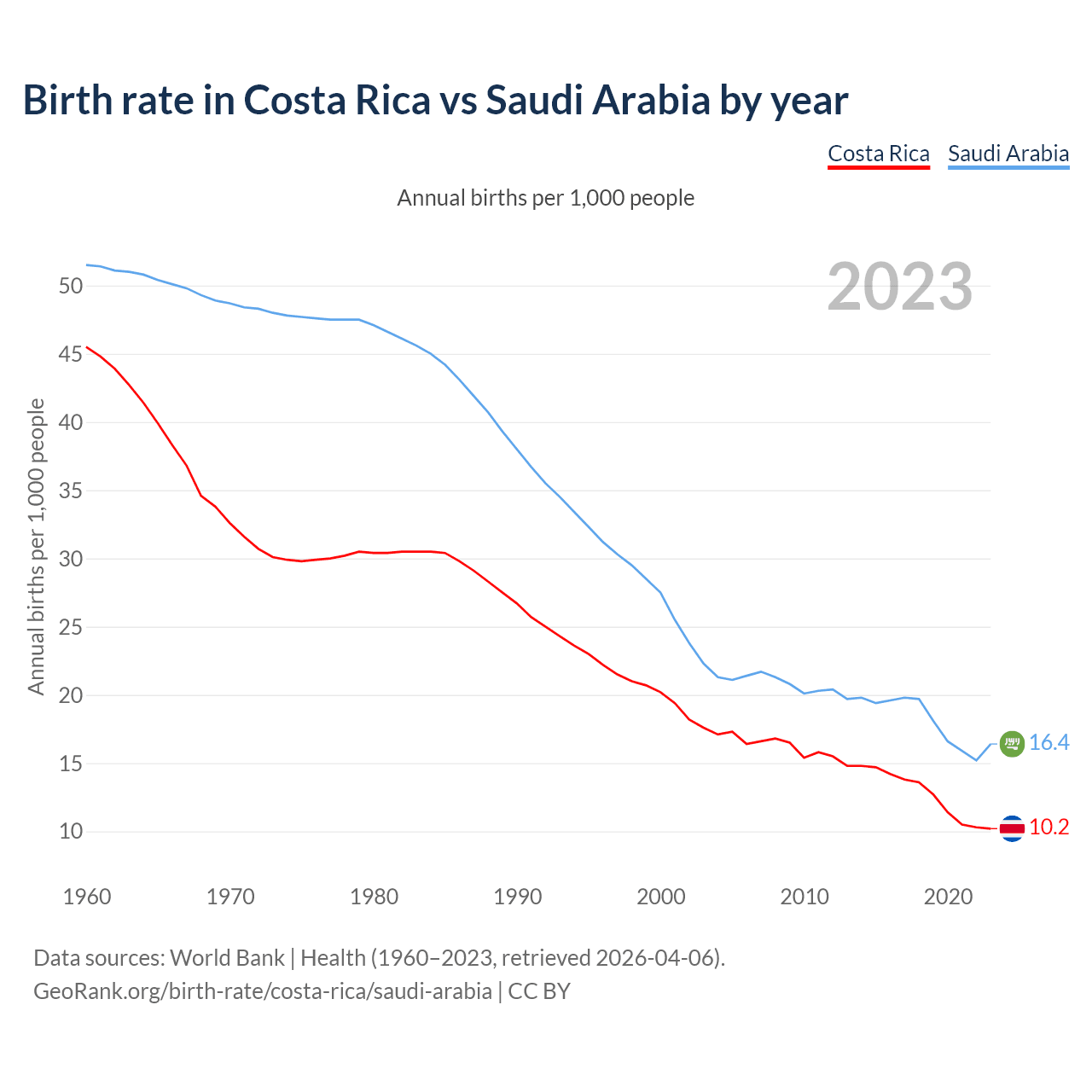 GeoRank.org/birth-rate/costa-rica/saudi-arabia | CC BY