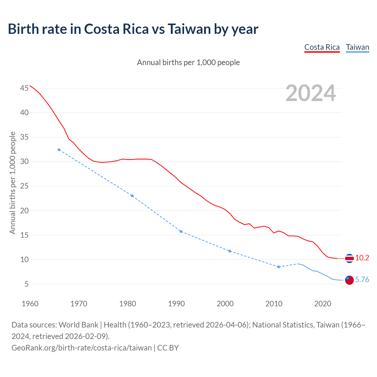 GeoRank.org/birth-rate/costa-rica/taiwan | CC BY