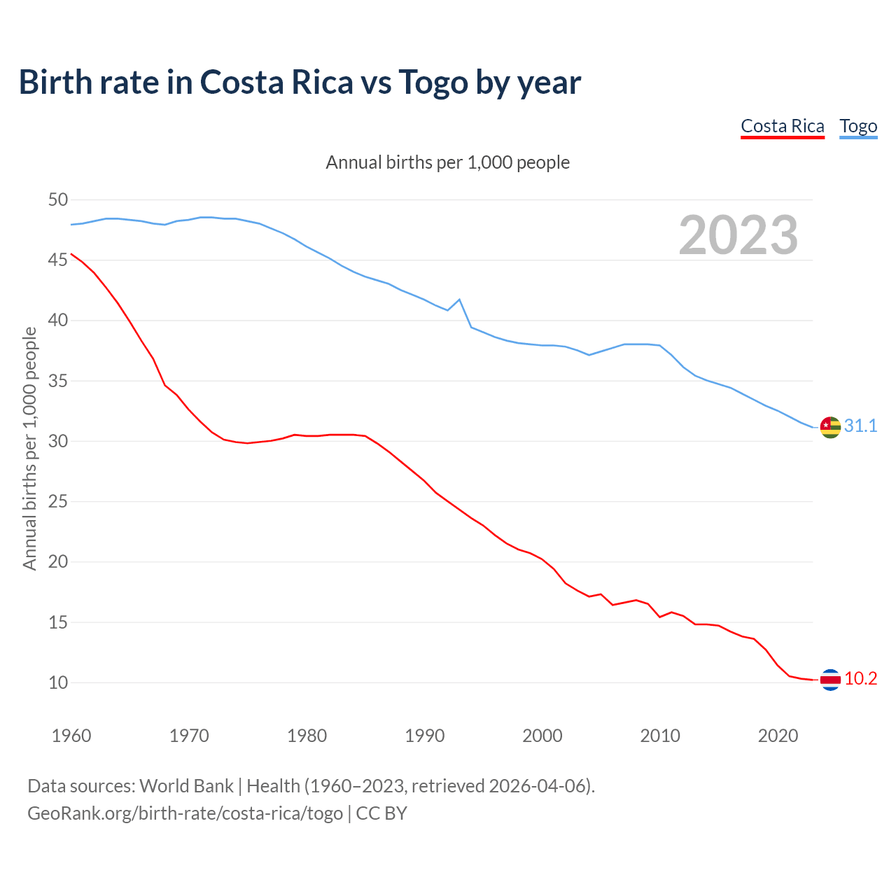 GeoRank.org/birth-rate/costa-rica/togo | CC BY