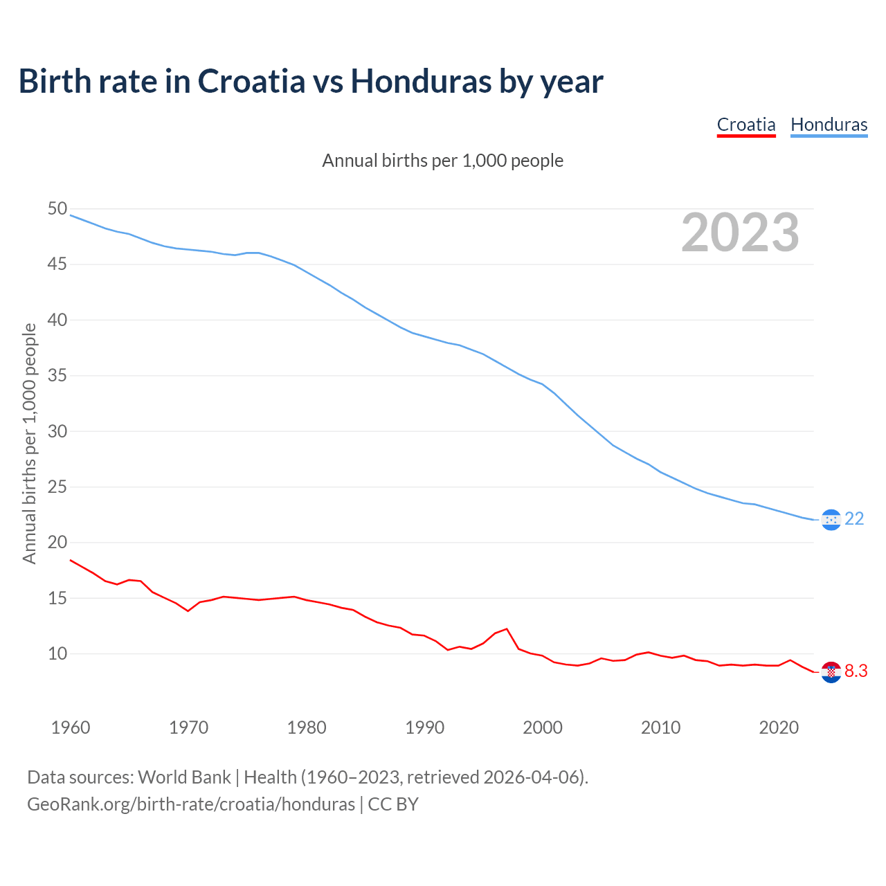 GeoRank.org/birth-rate/croatia/honduras | CC BY