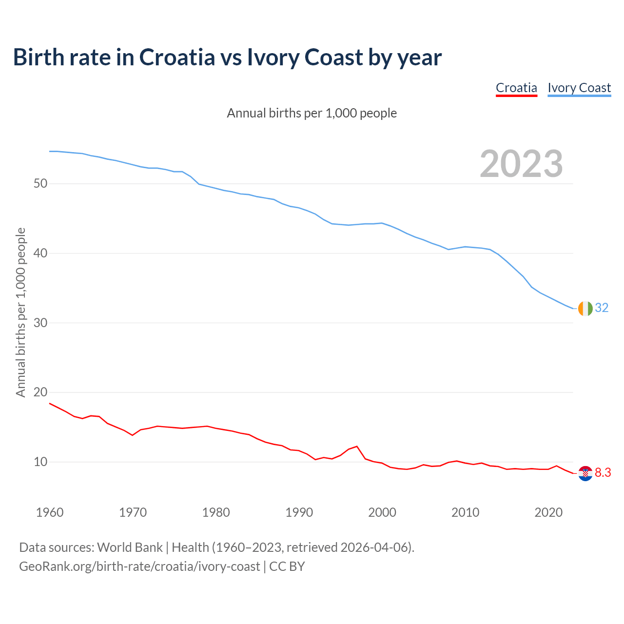 GeoRank.org/birth-rate/croatia/ivory-coast | CC BY