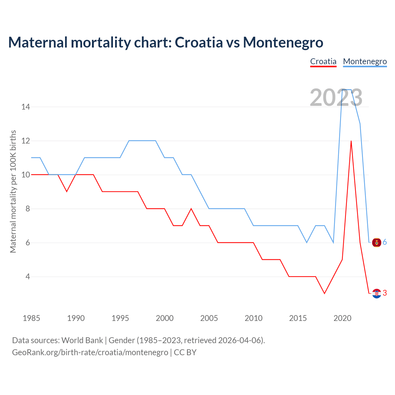 Maternal mortality chart: Croatia vs Montenegro