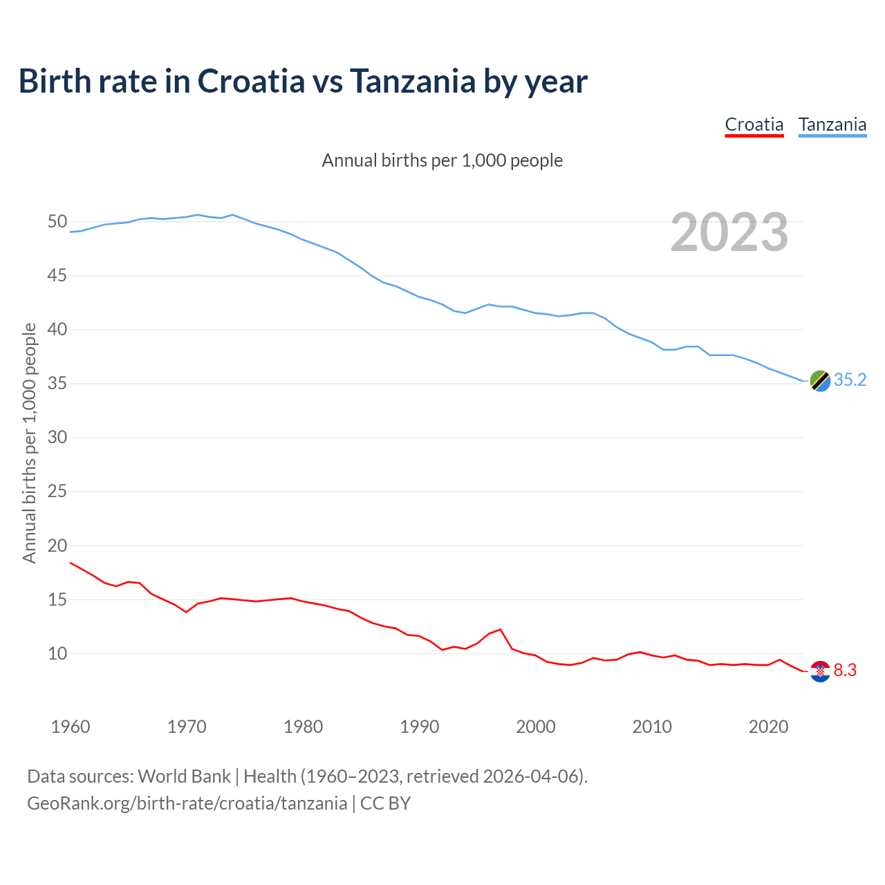 GeoRank.org/birth-rate/croatia/tanzania | CC BY
