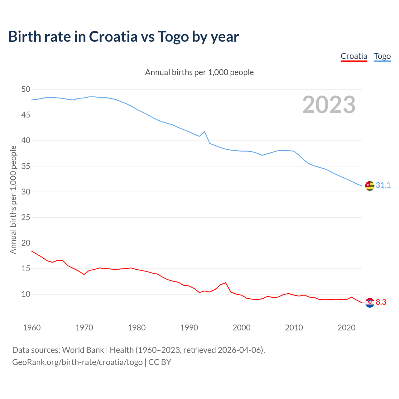 GeoRank.org/birth-rate/croatia/togo | CC BY