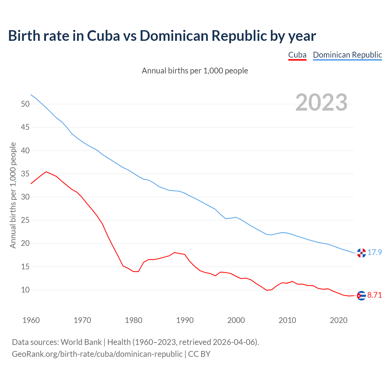 GeoRank.org/birth-rate/cuba/dominican-republic | CC BY