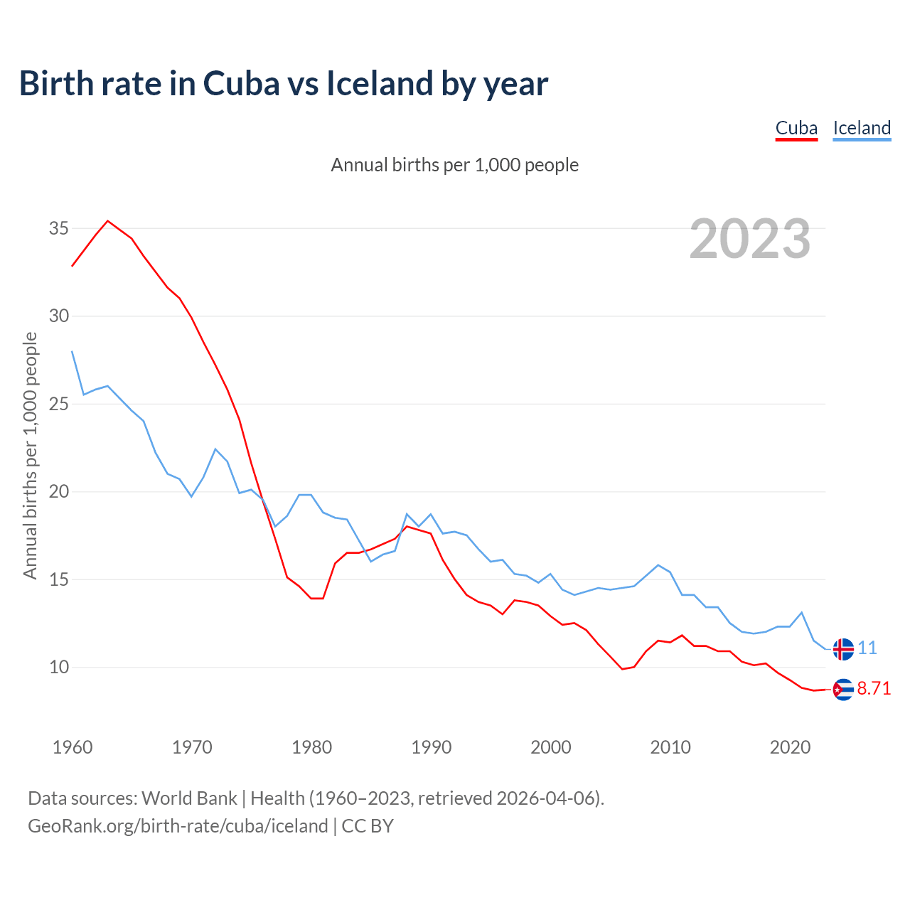 GeoRank.org/birth-rate/cuba/iceland | CC BY