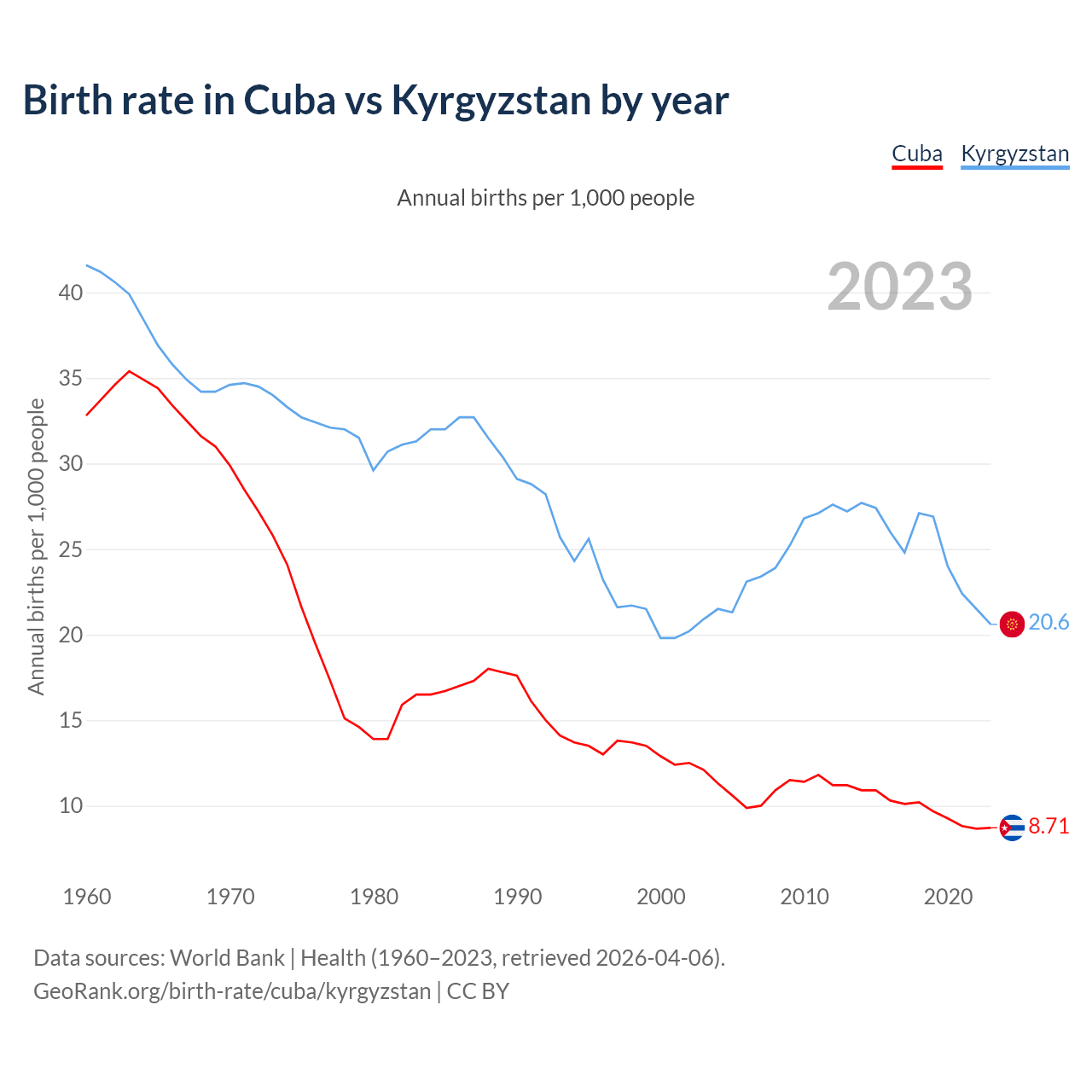 GeoRank.org/birth-rate/cuba/kyrgyzstan | CC BY