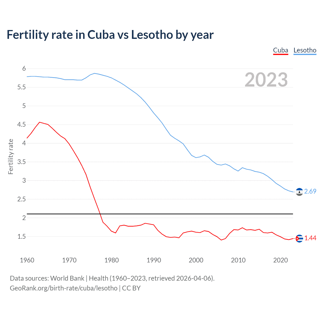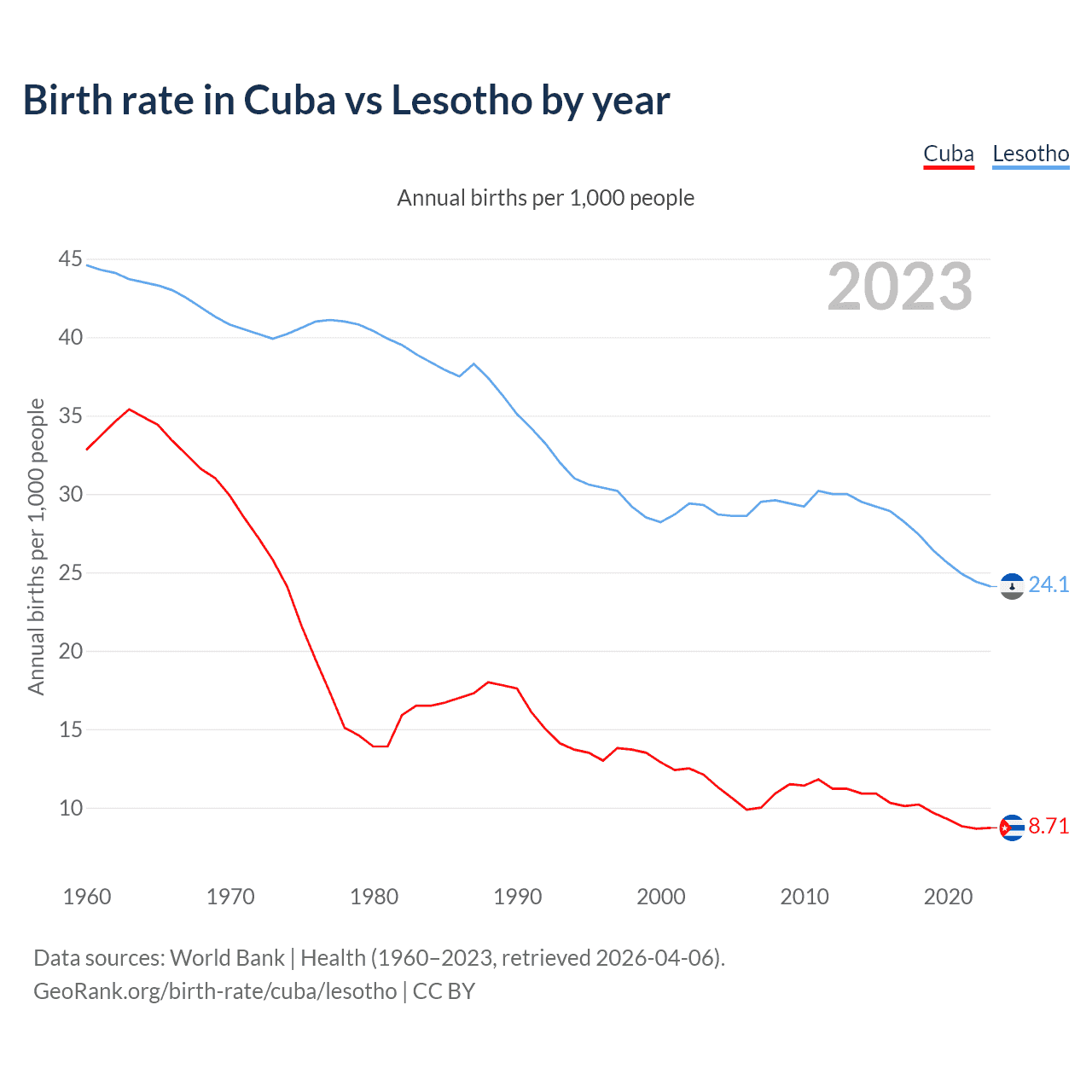 GeoRank.org/birth-rate/cuba/lesotho | CC BY