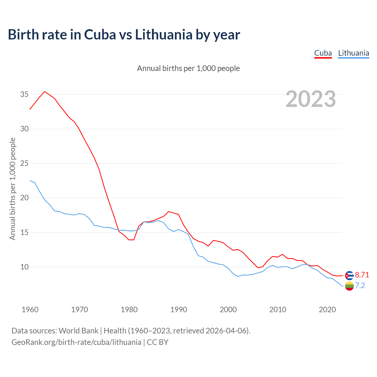 GeoRank.org/birth-rate/cuba/lithuania | CC BY
