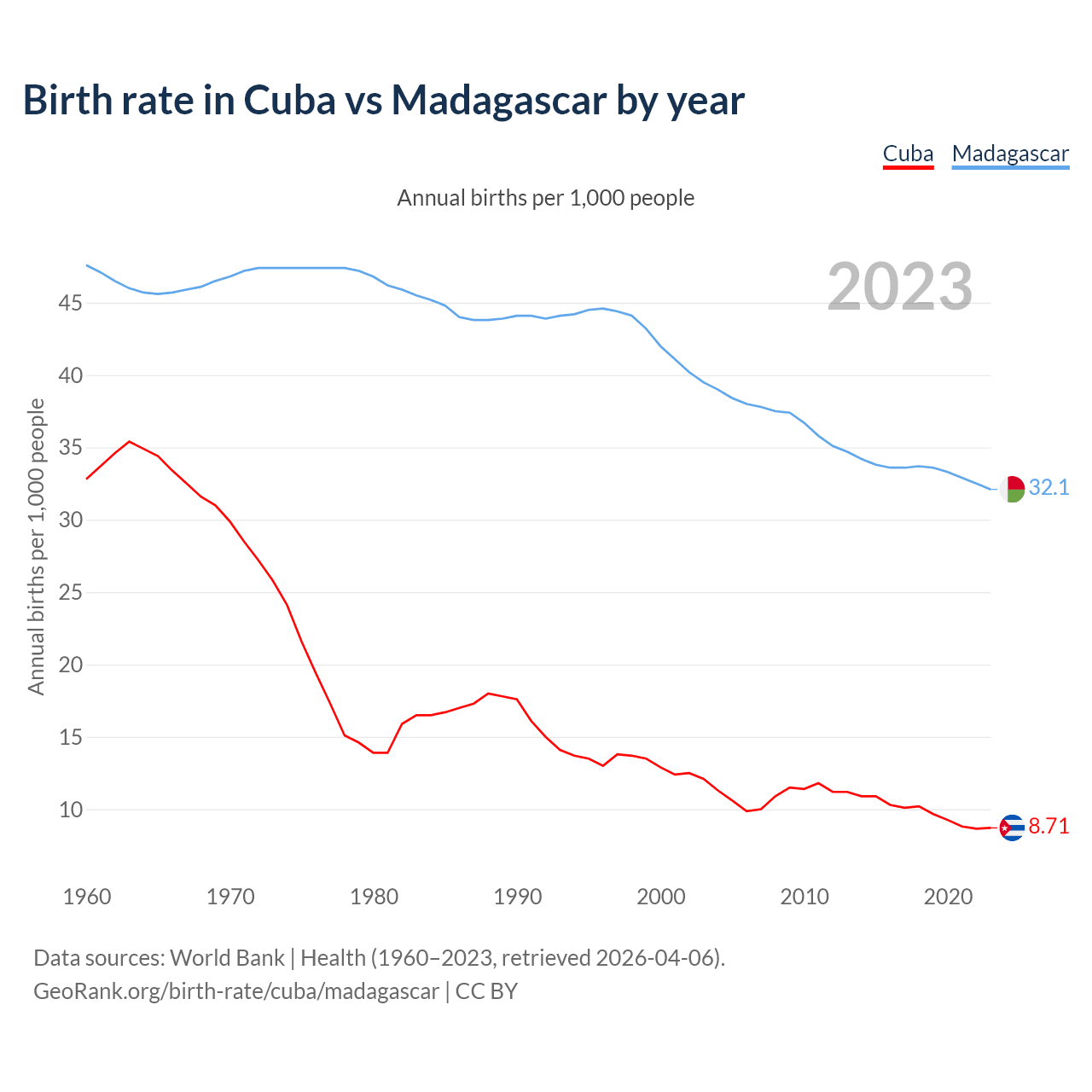 GeoRank.org/birth-rate/cuba/madagascar | CC BY