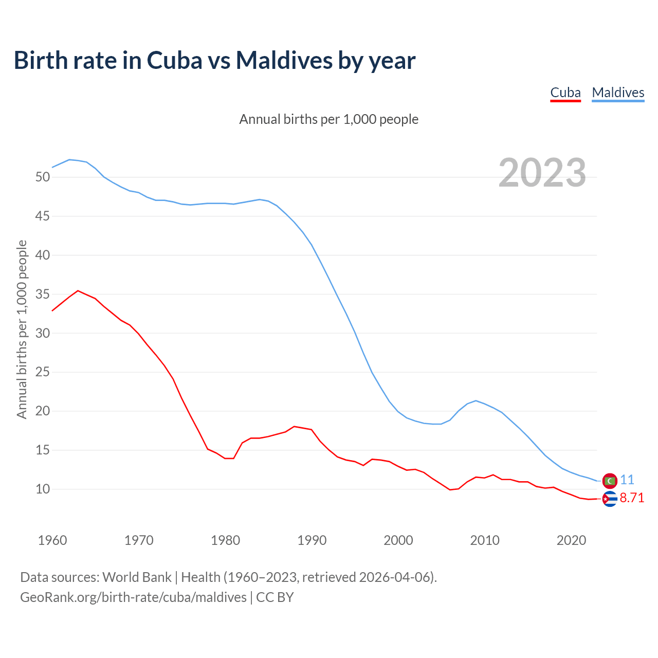 GeoRank.org/birth-rate/cuba/maldives | CC BY