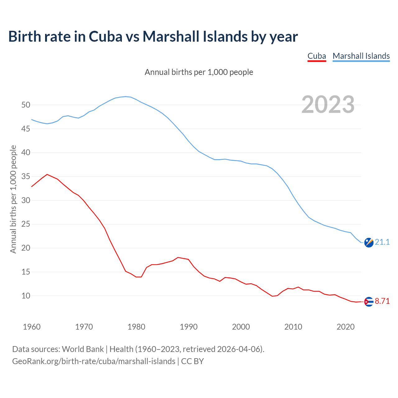 GeoRank.org/birth-rate/cuba/marshall-islands | CC BY