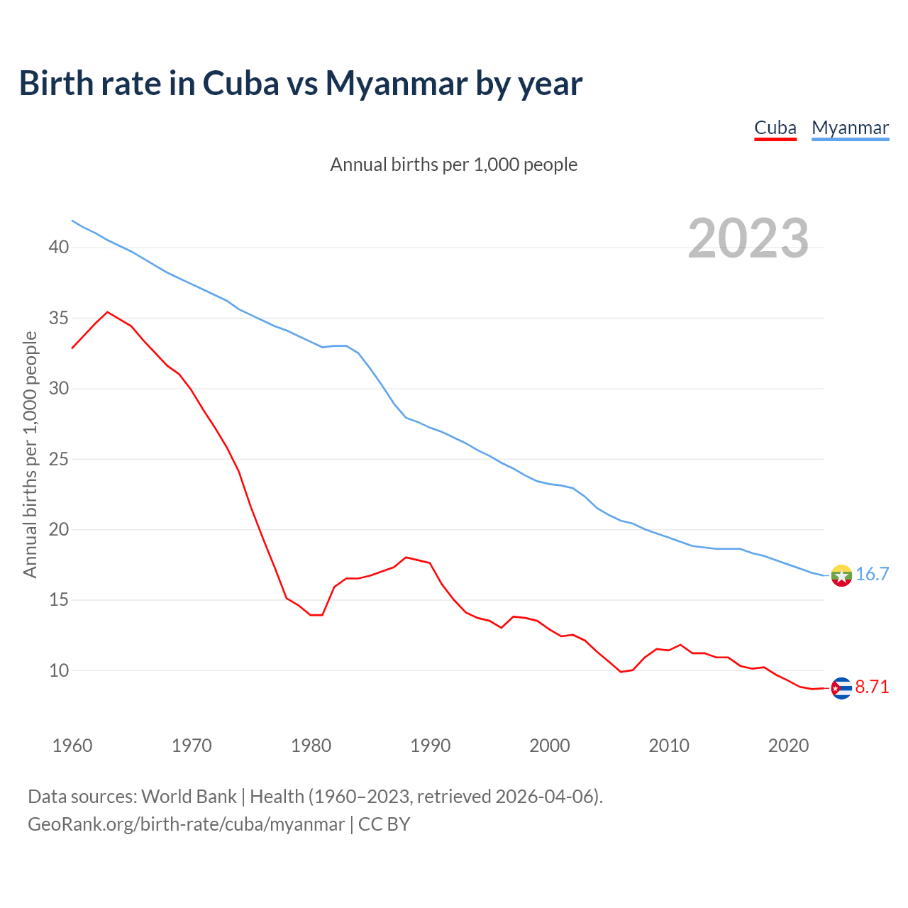GeoRank.org/birth-rate/cuba/myanmar | CC BY