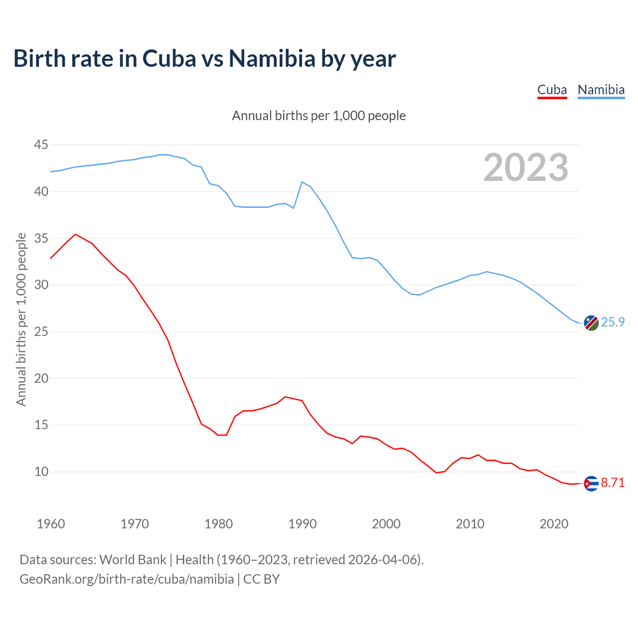 GeoRank.org/birth-rate/cuba/namibia | CC BY