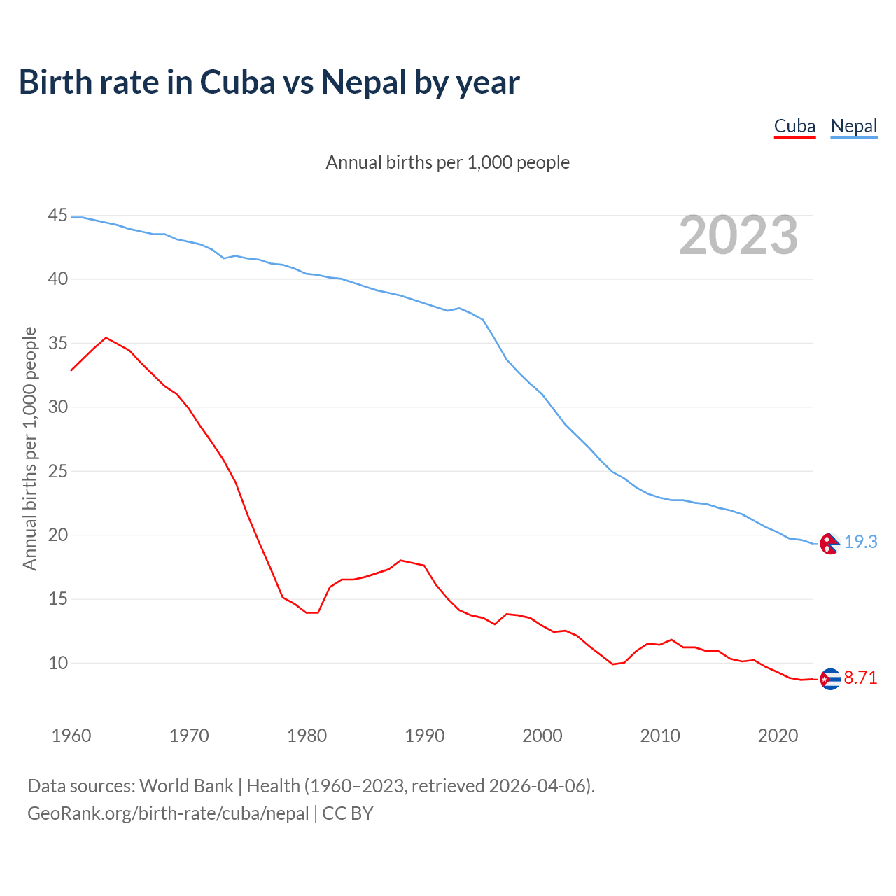 GeoRank.org/birth-rate/cuba/nepal | CC BY