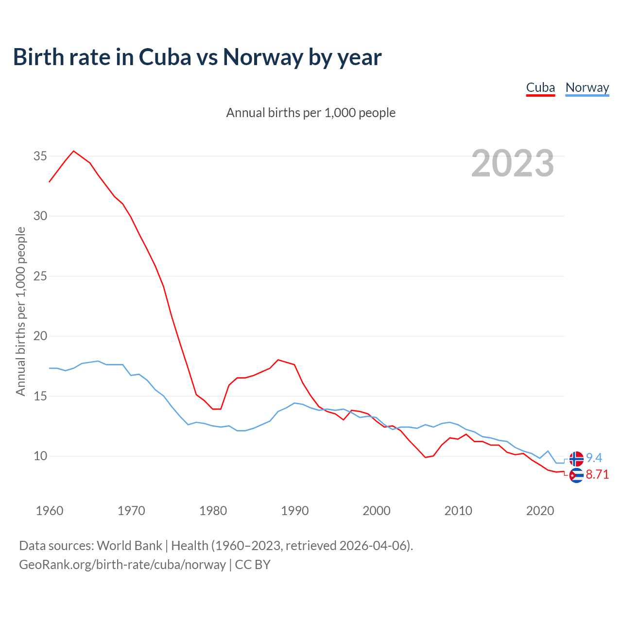 GeoRank.org/birth-rate/cuba/norway | CC BY
