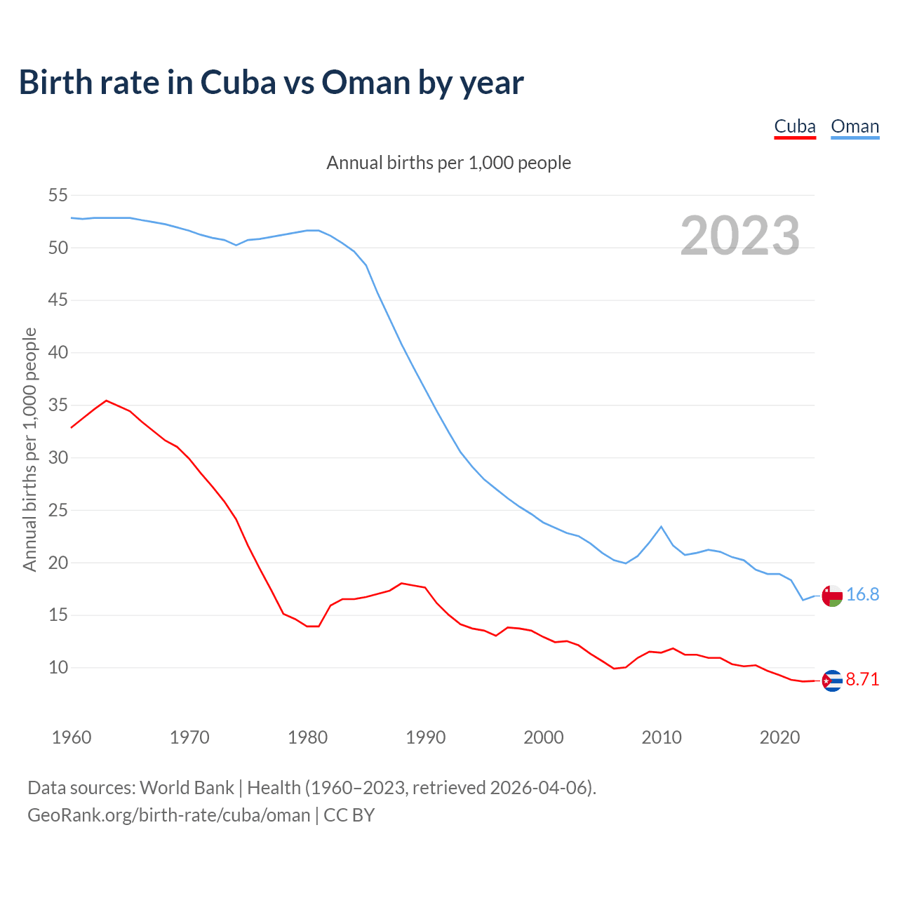 GeoRank.org/birth-rate/cuba/oman | CC BY